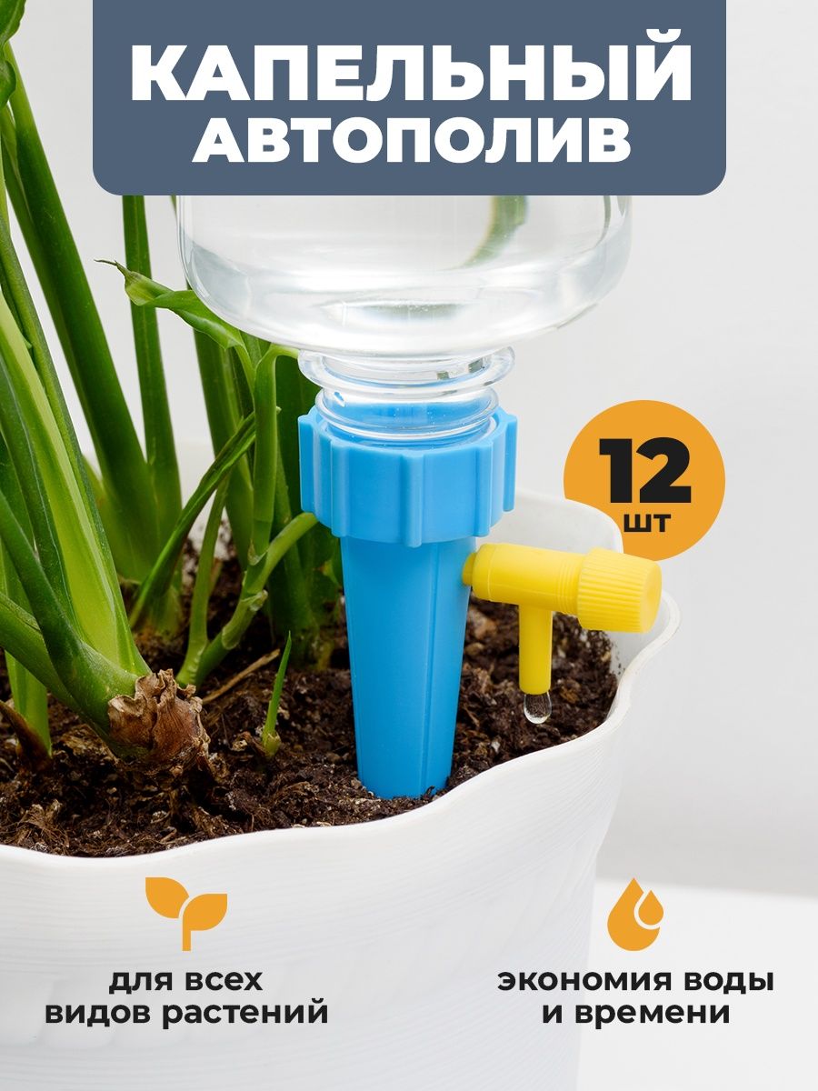 Спокойно отправляйтесь в отпуск или командировку и забудьте о передаче ключей соседям — теперь о ваших растениях позаботится поливочная система. В комплекте: 12 насадок-конусов, 12 кранов. Размер насадки — 13,5х3 см. Детали автополива для комнатных растений выполнены из прочного АБС пластика. Материал долговечен, устойчив к царапинам и различным повреждениям.